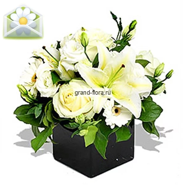 Эта композиция не просто удивляет своей красотой и нежностью, она ослепляет своей чистотой и величием. Только профессионалы могли создать такое чудо, и мы с радостью сообщаем, что этот прекрасный букет цветов создан руками опытных флористов международной службы доставки цветов Grand-flora.ru.